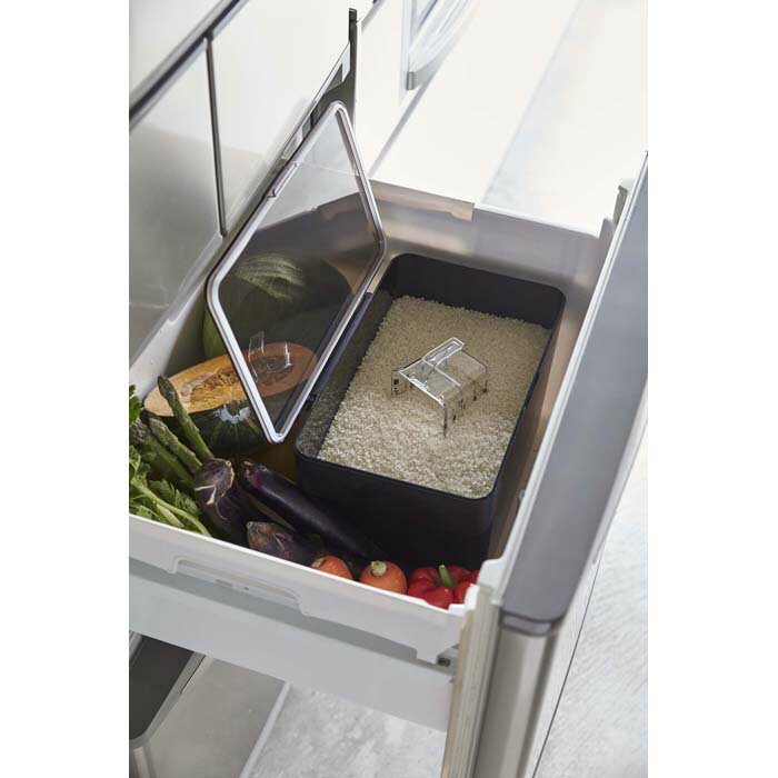 商品特徴システムキッチンの引き出しに合うスタイリッシュな米びつ。