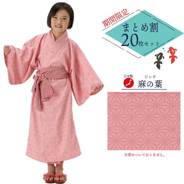 【20枚セット】日本製 子供浴衣 麻の葉柄【寝巻き浴衣】【旅館浴衣】